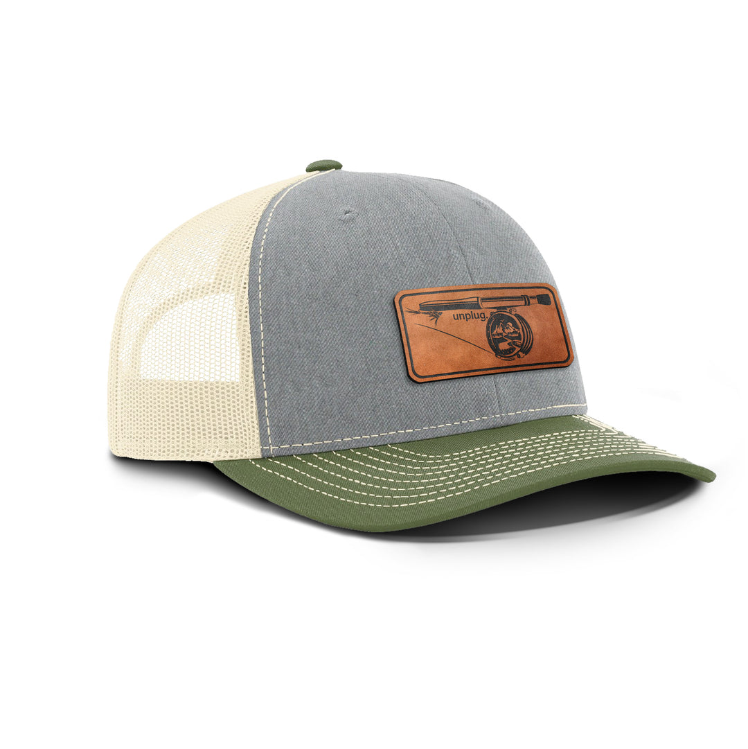 FLY FISHING Snapback Leather Patch Hat - HEATHER GREY/WHITE BLOWOUT