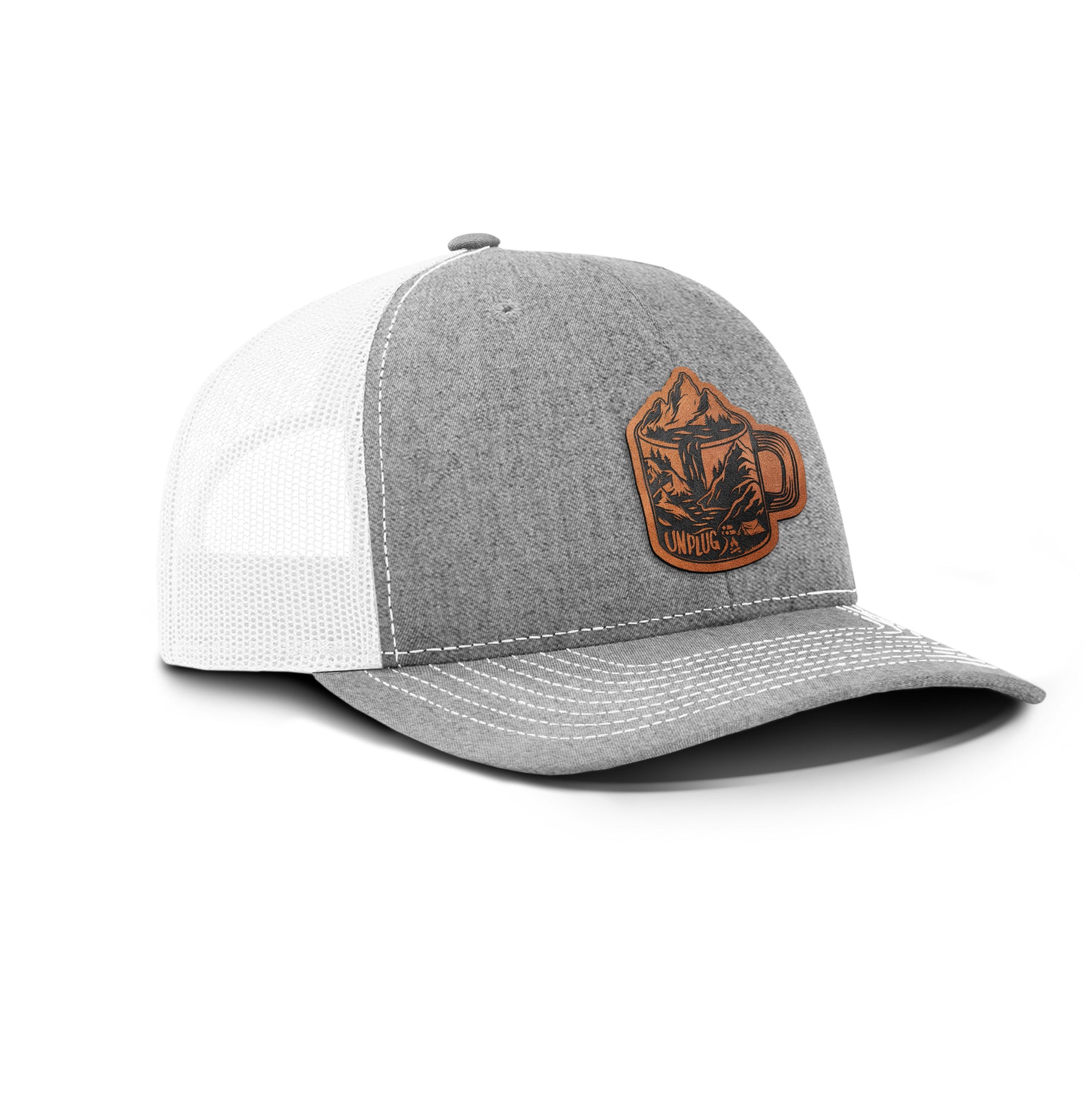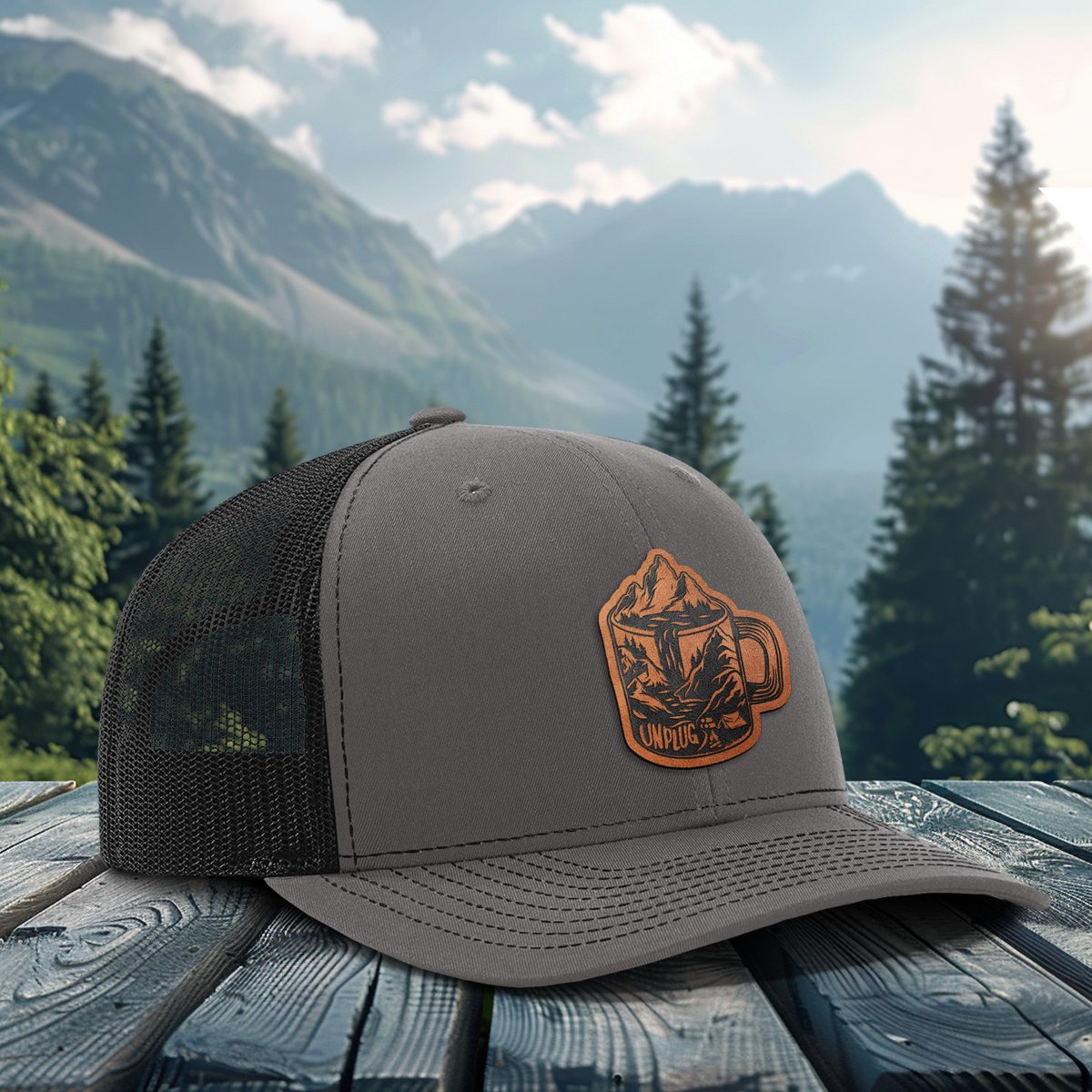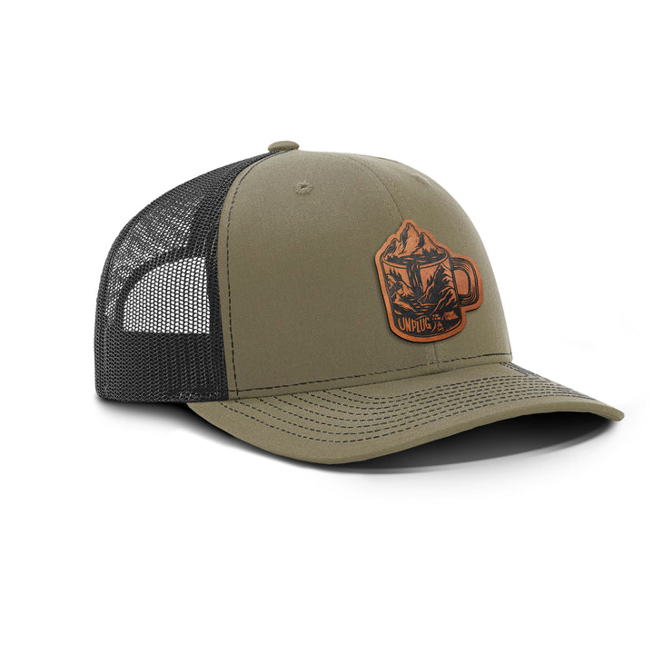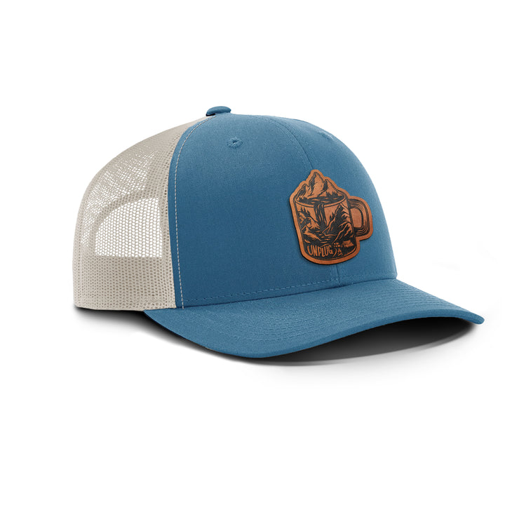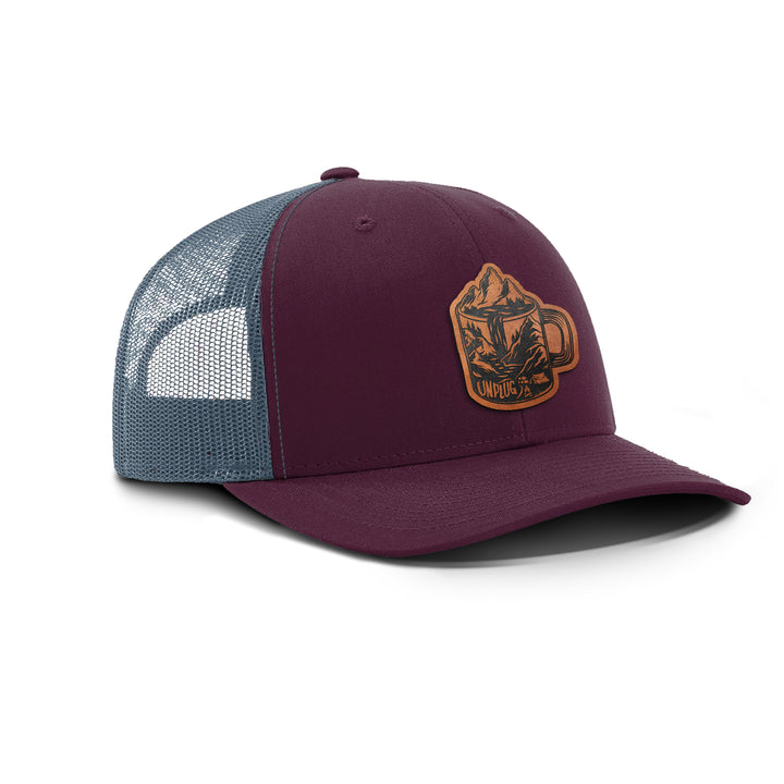 Coffee Mountain Scene Snapback Leather Patch Hat